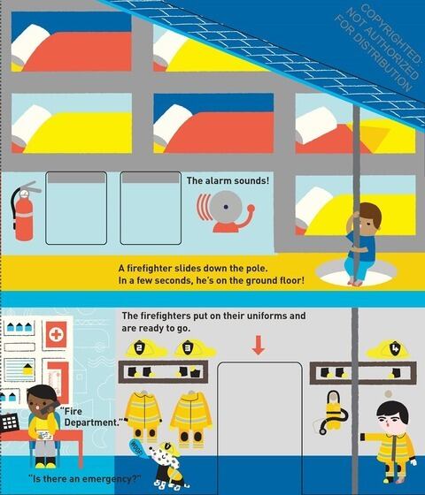 紙製のフィギュアを組み立てて、消防署の日常を学べるインタラクティブな1冊です。厳しい訓練や体力強化、また実際の火事の際の出動などが描かれています。読者はフィギュアを動かしながら、人々の暮らしを守り助けるファイヤー・ファイター達の仕事を体験します。
