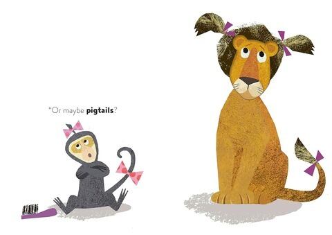 ミスター・ライオンの髪型はぼさぼさ。友達のモンキーが新しいスタイルを探してみたら?ということで、きれいに髪を洗ってからいろいろなスタイルを試してみます。パーマをかけてみたり、おさげにしてみたり。ページを捲るごとに髪型が変わるたのしい絵本です。ドイツ・ハンブルク生まれの絵本作家ブリッタ・テッケントラップの作品です。読者対象年齢3歳~5歳。